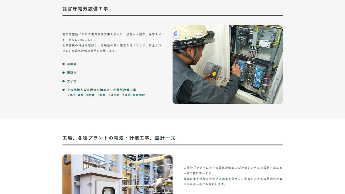 ホームページ実績長年の経験と信頼の実績により、安心の電気・計装工事、設計施工を提供されております。