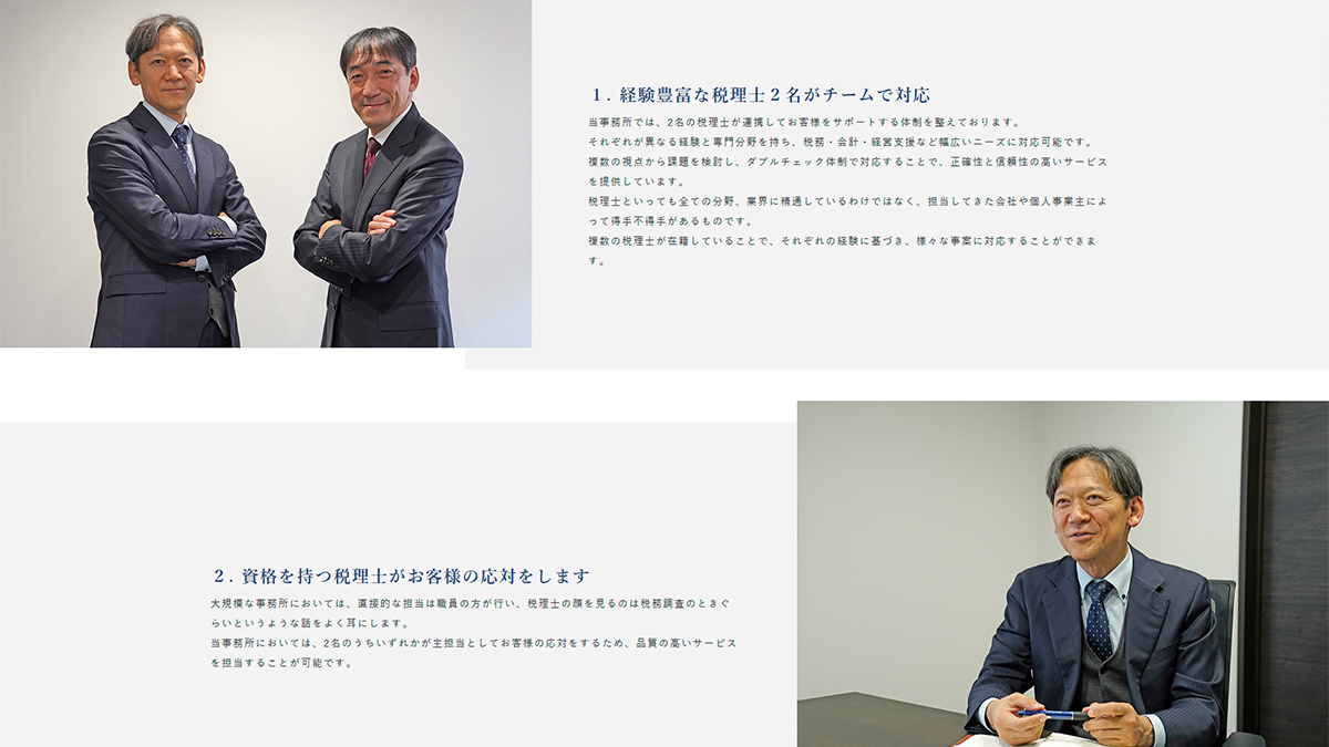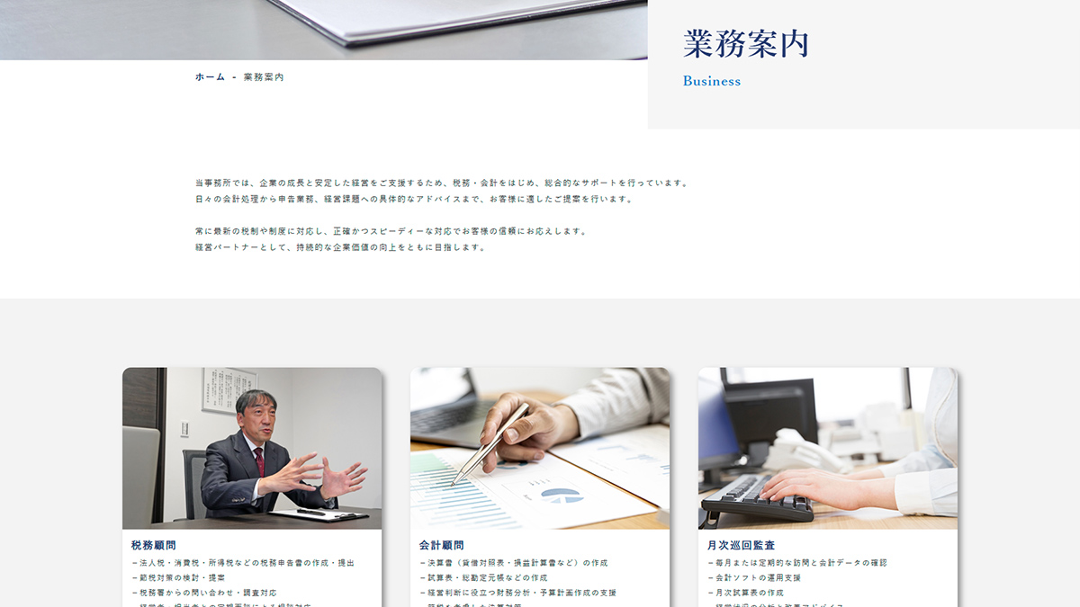 ホームページ実績法人税・決算書・相続税・事業承継コンサルティングなど幅広い税務・会計業務に対応しておられます。