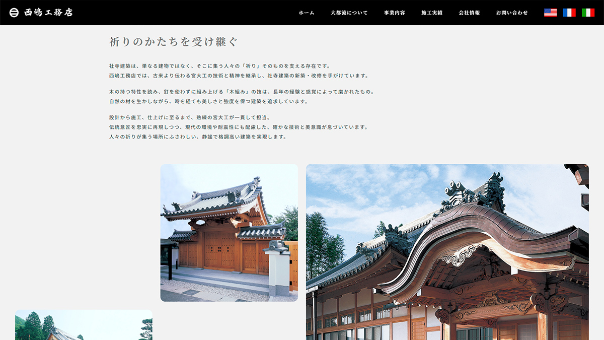 ホームページ実績伝統工法を受け継ぐ匠の技で文化と建築を未来へつなぐ使命の下、宮大工による社寺建築・神社仏閣の新築や修復、古建築の再生に携わっておられます。